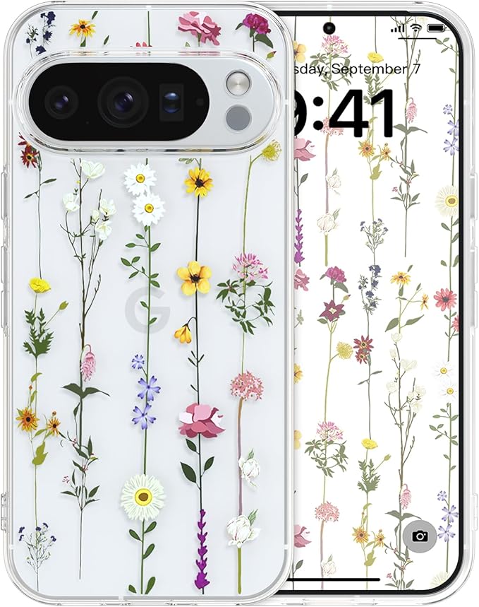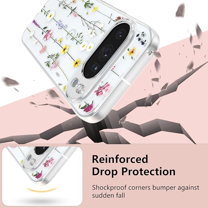 ZTOFERA Google Pixel 10 Pro XL 用花柄ケース かわいい グーグル ピクセル 10 Pro XL クリアケース 韓国 透明 おしゃれ 花 フラワーケース 薄型 軽量 柔軟な ソフト TPU スマホケース 人気 女子 耐衝撃 画面レンズ保護 携帯電話カバー