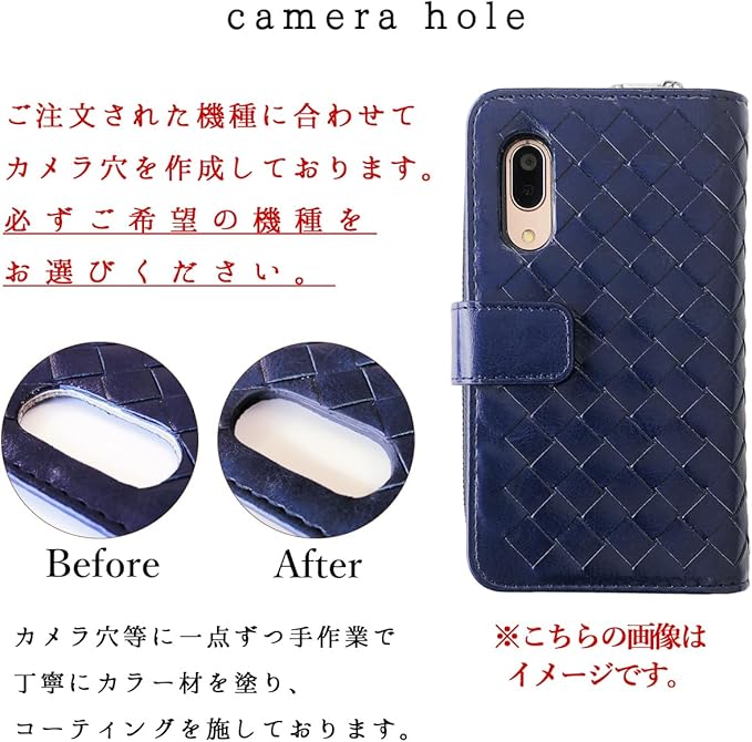 ストラップ穴付き(中央上下部2箇所)のため、チェーンを付けたりストラップを付けることが可能となります。手帳の素材は合皮 PUレザーとなります。電源ボタン・音量ボタン等はケースの上から押す仕様となります。予めご了承ください。