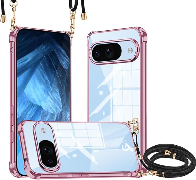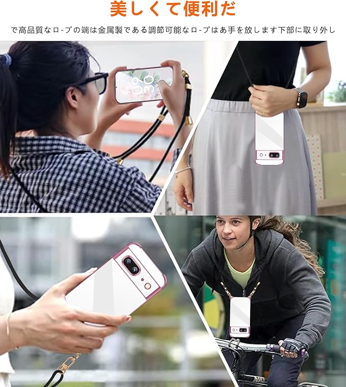 Google Pixel 9/Pixel 9 Pro ケース クリア ショルダー 新型韓国 可愛い 薄型 軽量 TPU バンパー メッキ加工 耐衝撃 Pixel 9/Pixel 9 カバー 首掛け 肩掛け 斜めかけ 縄掛けストラップ付き 1.5MM 取り外し調節可能なグーグルピクセル 9/9 Pro スマホケース 全面保護 落下防止 ワイヤレス充電対応【縄掛け-クリア 】