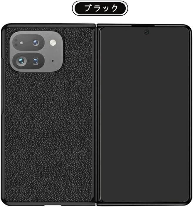 KOOLRIVER・Pixel 9 Pro Fold ケース 耐衝撃 カバー PUレザー+プラスチック シンプル グーグル ピクセル9 プロ フォールド 保護ケース カバー/カバー(ブラック)