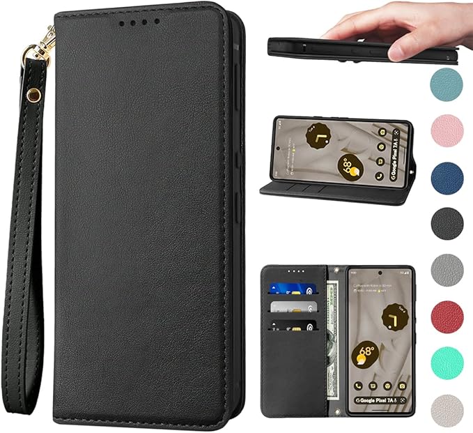 適用するGoogle Pixel 7A ケース 手帳型 適用する 高質PUレザー Pixel 7A カバー Pixel 7A ケース クリア ピクセル 7a 耐衝撃 内蔵マグネット開閉式 ベルトなし スマホケース おしゃれ カードポケット スタンド機能 便利 スプラット同梱 携帯ケース ブラック