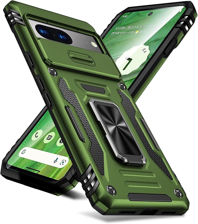 PNEWQNE Google Pixel 7 兼用ケース リング付き 衝撃吸収 耐衝撃 スタンド機能 米軍MIL規格 グーグル ピクセル 7 兼用ケース 全面保護 360 回転 滑り落ちにくい 人気 おしゃれ 携帯カバー 緑 WY88-29