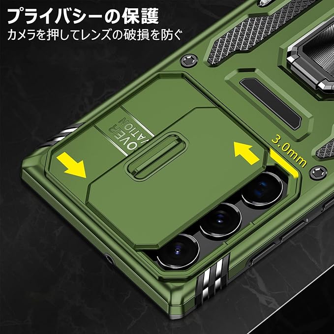 【360度回転式リング付き】360度回転可能、180角度調節可能、片手で携帯を操作でき、滑り止め、強奪、落下などのことを防げます。ケースを横置きにするとスタンド機能になり、持たず動画鑑賞などを楽しむことができます。
