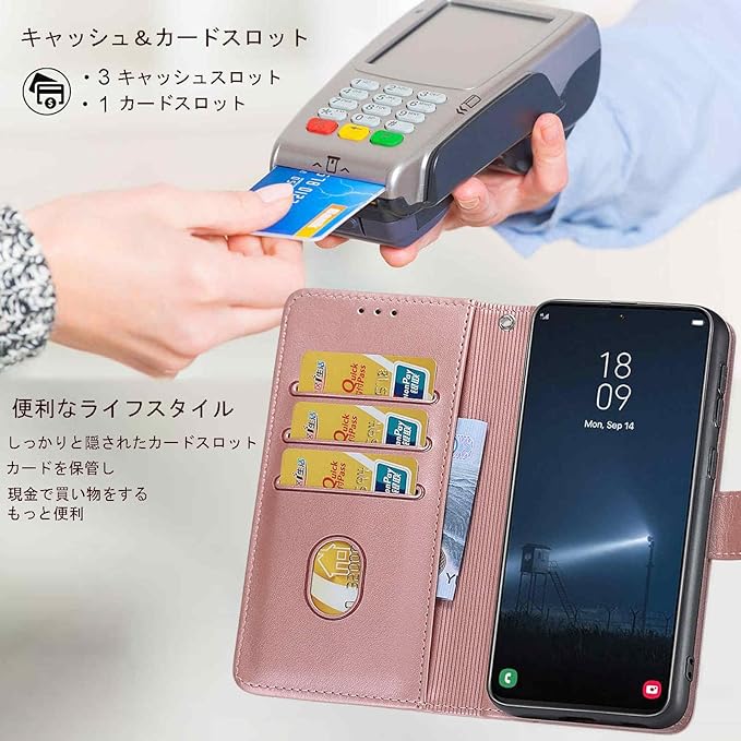 【カード収納】内側には3つのカードスロットと1つのキャッシュポケットがあります、名刺や定期券の収納に優れォン ケースです。普段の生活に便利をもたらします。