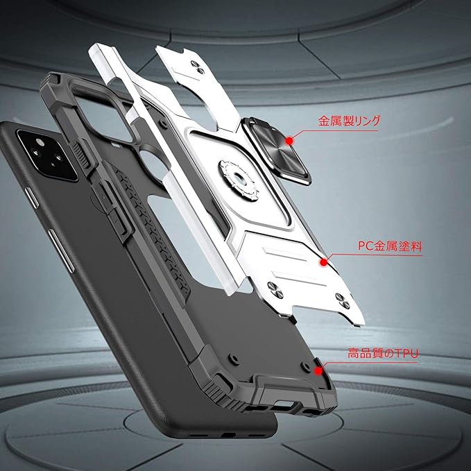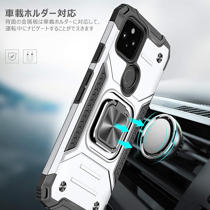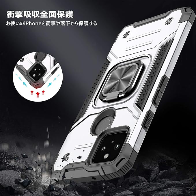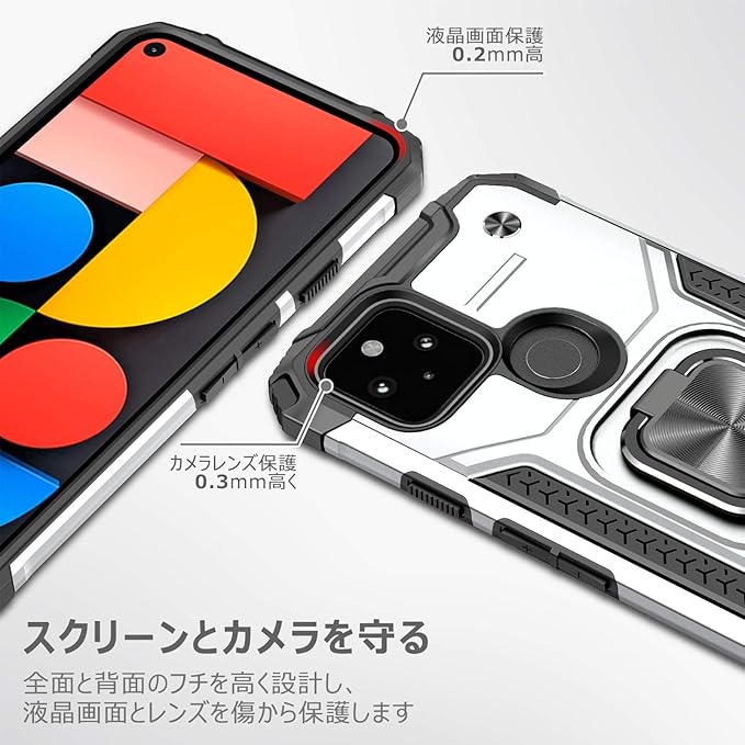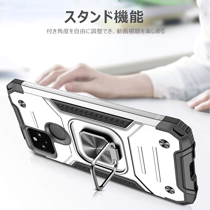 対応 Google Pixel 4a 5g 用のケース リング 衝撃吸収 耐衝撃 TPU+PCバンパー 二重構造 米軍MIL規格 全面保護カバー 滑り防止 車載ホルダー対応 擦り傷防止 滑り止め 軽量 薄型 グーグルピクセル4a 5G 用のカバー 指紋防止 耐久 おしゃれ 人気 携帯カバー 銀 MZ64-46