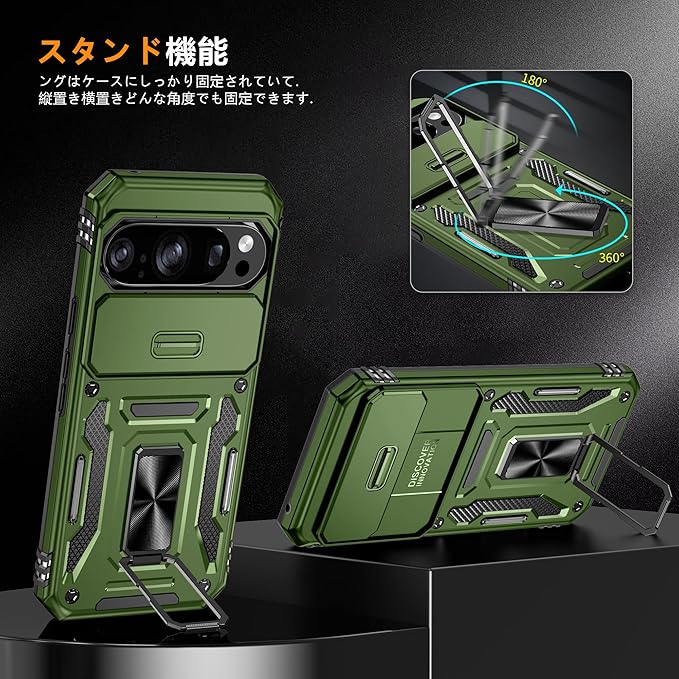 対応 Google Pixel 10 用ケース Pixel 10 Pro 用ケース リング付き 耐衝撃 衝撃吸収 tpu 薄型 擦り傷防止 薄型 シリコン スタンド機能 車載ホルダー対応 二重構造 PC バンパー ピクセル 10 プロ スマホケース 360 回転 おしゃれ 人気 携帯カバー(オリーブグリーン)Q46-KJZH-P10P-GLL