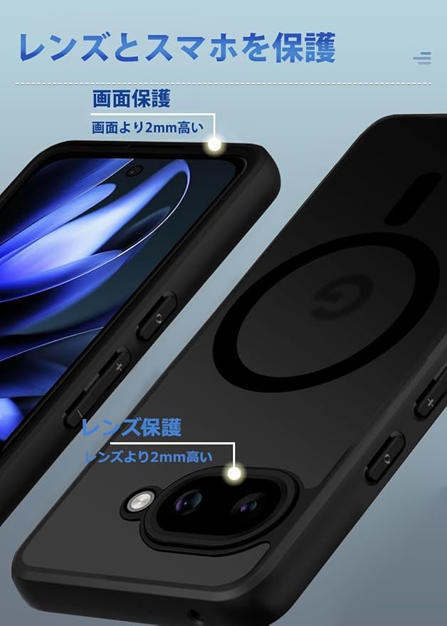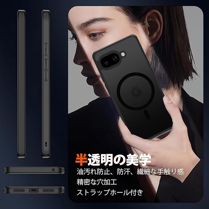 For Google Pixel 10A ケース 通用 MagSafe対応 マグセーフ ワイヤレス充電 マット ブラック マット仕上げ 半透明 マグネット搭載 TPU PC 落下防止 衝撃吸収 滑り止め 防塵 耐久性 黄ばみなし 耐衝撃 全面保護 レンズ保護 グーグル ピクセル 10 A カバー(ブラック)