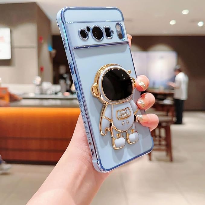 宇宙飛行士 ピクセル10 用 ケース 可愛い スタンド ソフト メッキ バンパー for pixel10 googleピクセル10 用 ケース 耐衝撃 スマホケース 韓国 かわいい 大人 男子 女子 横置き 薄型 耐衝撃 レンズ保護 おしゃれ ブルー