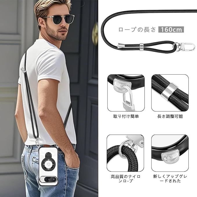 Google Pixel10/Pixel10 Pro ケース ショルダーストラップ付きのケースは両手を解放し、行きたい場所に行くのを助けてくれます。登山測量ロープに触発され、取り外し可能なショルダーストラップのデザインは普通の携帯ケースや斜めショルダーバッグの形に自由に変換できる。作業、旅行、出張、ショピング、散歩、コンサート、パーティーに最適です。手を離しても、携帯電話を携帯できます。スマートフォンに安心感を与えます。調節可能なコードストラップは非常に快適で、さまざまな色があるので、組み合わせて自分のスタイルを作成できます。