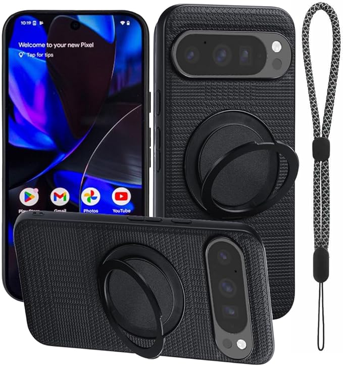 【ViLi D-THY】Google Pixel 10 / 10Pro 対応 360度回転式スタンド・マグネットリング ストラップ付きケース 黒 CPIX10-D-THY-BK