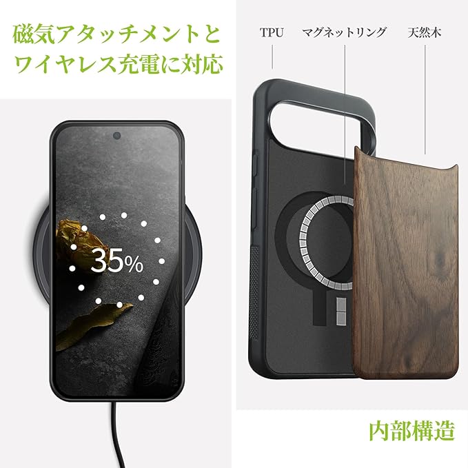 Carveit MagSafe (マグセーフ) 対応 Google Pixel 10 ケース 木製 【天然木+TPUシリコンツーインワン】 磁気内蔵 グーグルピクセル 10 ケース ウッド 耐久性 滑り止め 指紋防止 耐衝撃 Pixel 10 カバー (ウォールナット-白木スタイル)