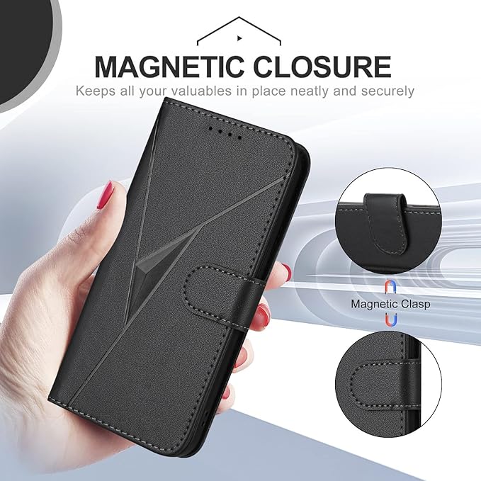 Reddylin高品質手帳型ケース高品質で耐摩耗性のある素材で作られているため、日常の使用での傷や擦り傷に効果的に抵抗でき、長時間使用しても新品同様の状態を保ちます。立体感の強いトライアングルが、シンプルでモダンアートにあふれたスマホケースに視覚的なインパクトを強く加えています。ビデオを見たり、ビデオ通話をしたりするときは、フリップカバーを直角に調整するだけで、便利な視聴体験を楽しむことができます。フリップカバーのデザインは、電話を全面的に保護し、偶発的な衝突による画面の傷、ほこり、または損傷を効果的に防ぎ、電話が誤って落とされた場合でも、衝撃力を減らし、電話の本体を損傷から保護することができます控えめなブラック、落ち着いたロイヤルブルーとブラウン、情熱的なレッド、静かなローズゴールドとライトパープルなど、さまざまなファッションカラーオプションを提供し、さまざまなユーザーのファッションテイストのニーズを満たすことができます。