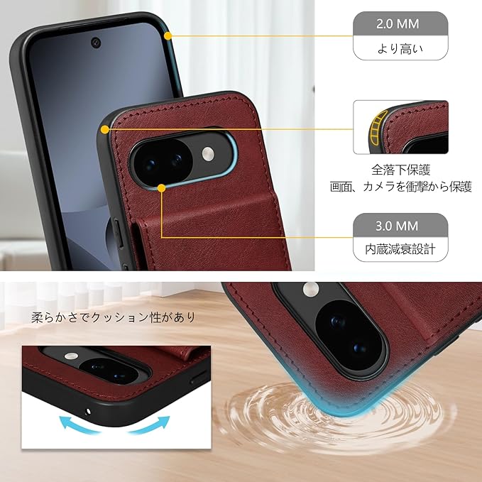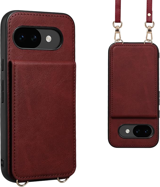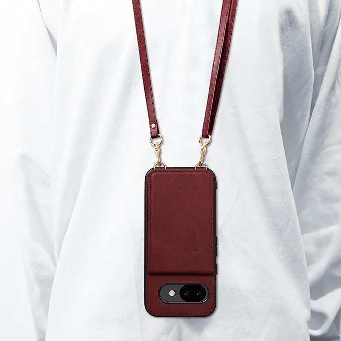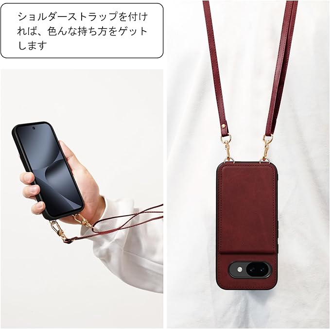 Pixel 10a 用 ケース 手帳型 背面 カードケース ショルダー ストラップ 背面ケース グーグル ピクセル 10a 手帳型ケース 肩掛け Google カード収納 斜め掛け スタンド マグネット PUレザー D5N レッド