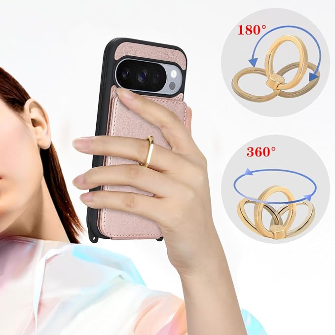 Cavor グーグルピクセル10/ 10 Proケース手帳型pixel10 ケース 手帳型ショルダーストラップクロスボディ肩掛け 首かけ 斜めがけ 背面ポケット付きPixel 10用のケース財布カバー【上下開】グーグルピクセル10proケースカード収納【RFID機能】case 360 回転リング横置磁気機能落下防止/持ちやすい-ピンク