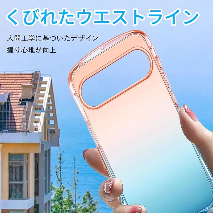 【魅力な透明感】グラデーションが美しい2色のTPUケースです、透明な背面は本体の美しさを示し、色の鮮明さが長く保たれます。本製品は個別に特殊な方法で着色しているため、色の濃淡や模様には個体差があります。また、写真の色と実物の色は、光の加減や画面の色調によって若干異なる場合がございます。