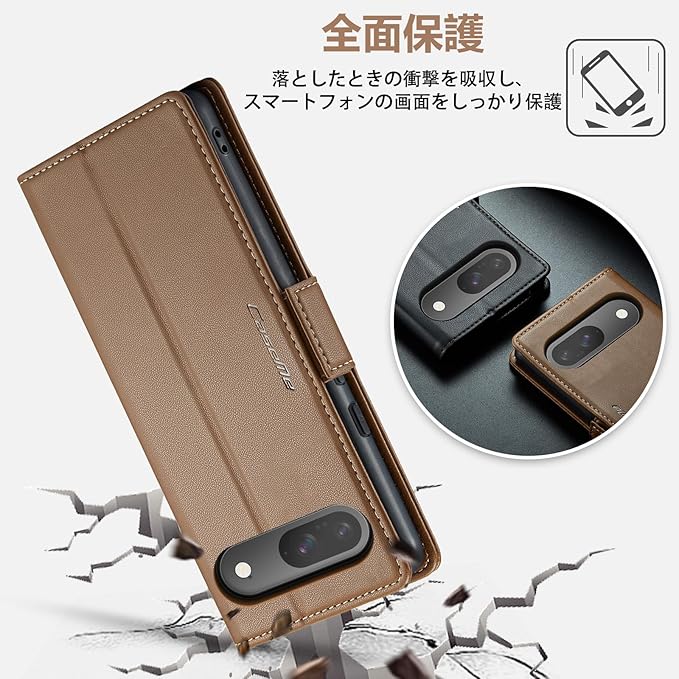 Google Pixel 10/Pixel 10 Pro ケース 手帳型 PUレザー 携帯便利 衝撃防止 擦り傷防止 全面保護 カード収納 保護カバー 財布型 磁気バックル付き タンド機能付き グーグルピクセル 対応 携帯 カバー Google Pixel 10 Pro/10 用 手帳型ケース ブラウン