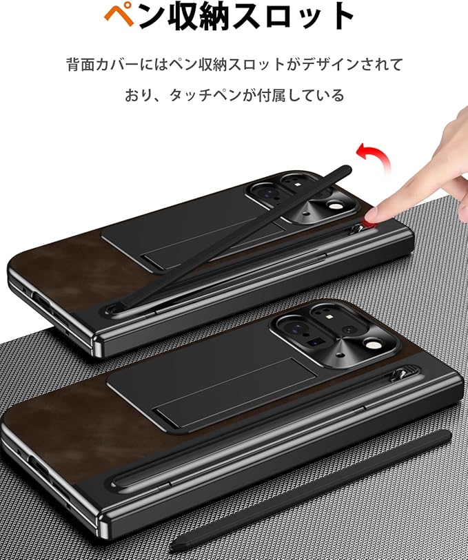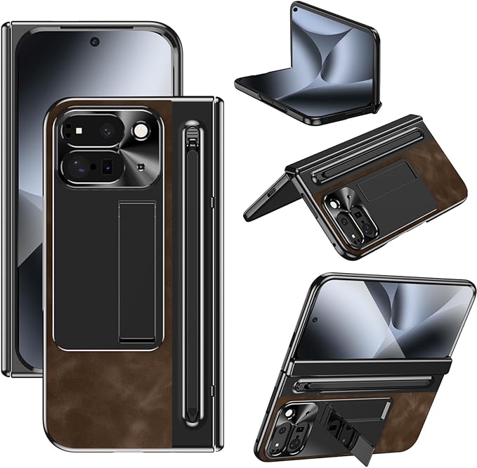 NINKI コンパチブル Google Pixel 10 Pro Fold 交換用ケース タッチペン付き ペンスロット ヒンジ保護 キックスタンド内蔵 折り畳み式 PC+レザー製 スクリーンフィルム一体型 スタンド機能 スクラッチ防止 グーグル ピクセル 10プロ フォールド 5G 用カバー(ダークブラウン)