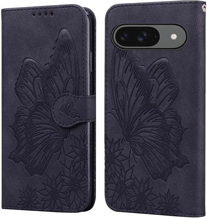 ケース と互換性のある Google Pixel 10 美しいレトロな蝶柄の表紙デザイン に適合するグーグルピクセル10 カバー と快適な質感 に適合するグーグルピクセル9 カバー 財布型 で収納しやすい 全面保護カバー スタンド機能 磁気ボタン に適合するぴくせる9 スマホケース 黒