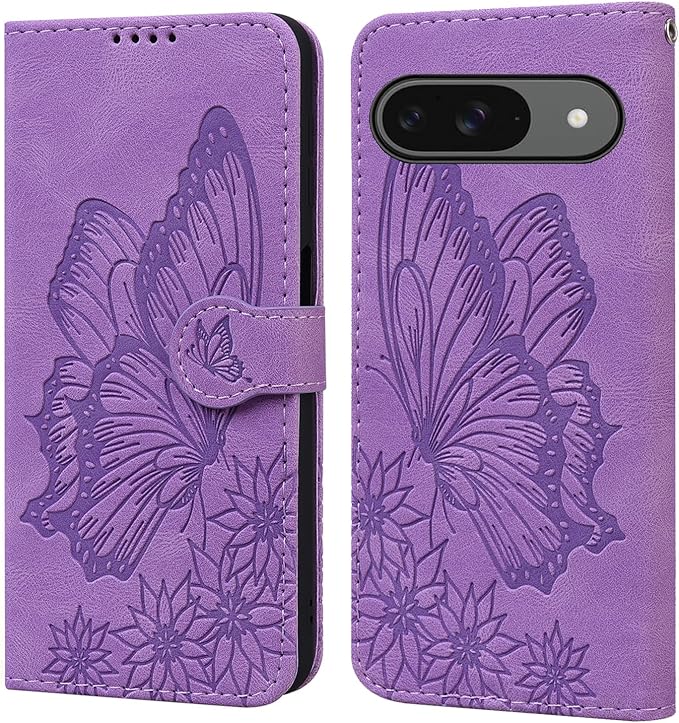 ケース と互換性のある Google Pixel 10 美しいレトロな蝶柄の表紙デザイン に適合するグーグルピクセル10 カバー と快適な質感 に適合するグーグルピクセル9 カバー 財布型 で収納しやすい 全面保護カバー スタンド機能 磁気ボタン に適合するぴくせる9 スマホケース 紫