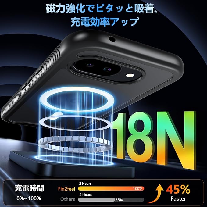 Fin2feel For Google Pixel 10a ケース【MagSafe対応】両面カバー マット半透明 黄ばみなし 指紋防止 耐衝撃 滑り止め グーグルピクセル10a ワイヤレス充電 ぐーくるぴくせる10a カバー6.3インチ(ブラック)