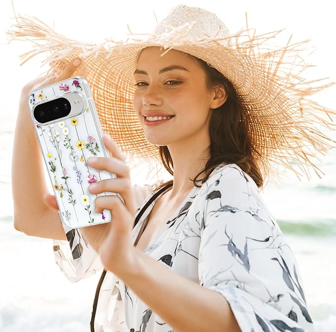 ZTOFERA Google Pixel 10/10 Pro 用花柄ケース かわいい グーグル ピクセル 10/10 Pro クリアケース 韓国 透明 おしゃれ 花 フラワーケース 薄型 軽量 柔軟な ソフト TPU スマホケース 人気 女子 耐衝撃 画面レンズ保護 携帯電話カバー