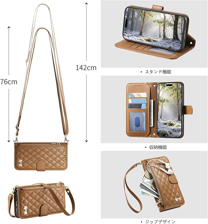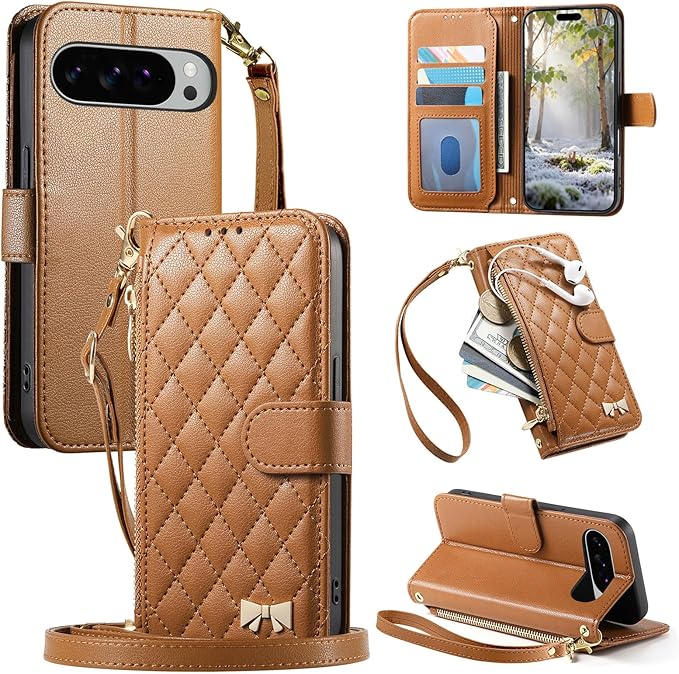 対応 Google Pixel 10 Pro XL/Pixel 9 ProXL 用の ケース 手帳型 ショルダー 斜め掛け ピクセル10プロxl 用の スマホケース 女性 肩掛け 調節可能な 携帯ケース 落下防止 手帳型ケース スタンド機能付き 磁気閉鎖 財布型 360度保護 耐衝撃 カード収納 レザー おしゃれ 携帯カバー (ブラウン)