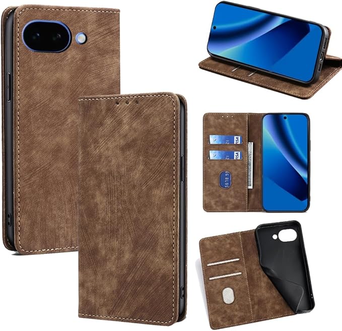 ケース Google Pixel 10a 対応 防塵 耐衝撃 傷つけ防止 軽量 手作り PUレザー カード収納 RFID磁気防止 マグネット スタンド機能 ケース 手帳型 グーグルピクセル10a 用 (ブラウン)