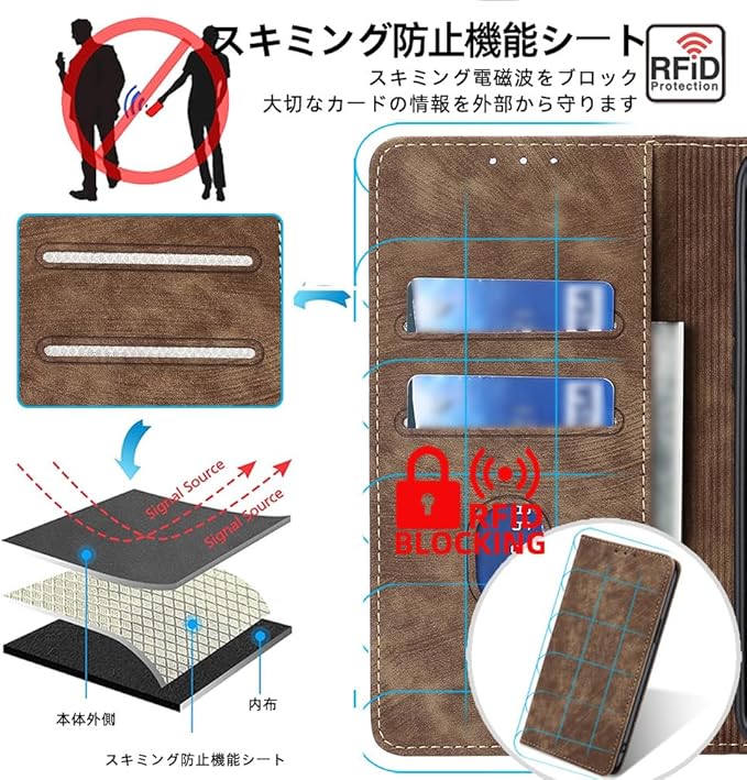 【サイドマグネット】 サイドマグネット式なので、磁気カード類への影響しにくくて、カバンの中でもカバーが開きません。RFID耐磁性材料を追加し、クレジットカードの盗難を効果的に防ぎ、不正な方法で盗難スキャンを防ぎ、より安全なユーザーエクスペリエンスを提供し、個人情報を最大保護します。