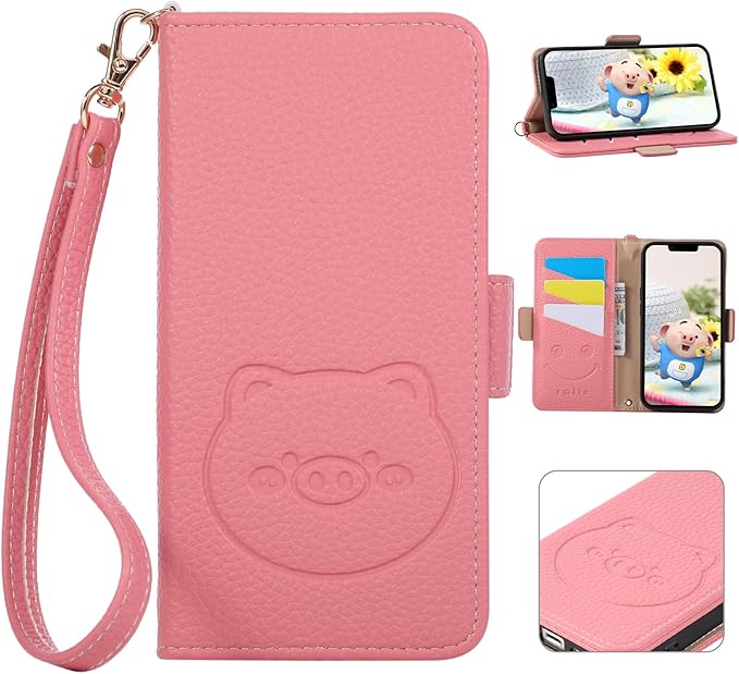 適用 ピクセル10/ピクセル9 ケース 手帳型 財布型 カバー Google Pixel 10 手帳型 ケース スマホケース かわいい漫画の豚の模様 PUレザー カード収納 耐衝撃 携帯カバー Pixel 9 マグネット スタンド機能付き5色 適用 Google Pixel 10/Pixel 9 6.3インチ対応(ウォーターメロンレッド)