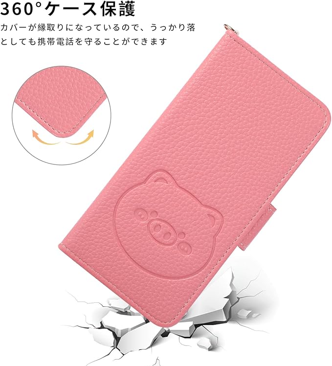 【高品質の素材・巧妙なデザイン】キュートなブタのキャラクターデザインに、上質なレザーを使用した快適な使い心地。PUとソフトTPUのアウターシェルは、厳選されたレザーと巧みに融合し、キュートでフレッシュな見た目と、まるで肌のような上質な感触を実現しています。アウターシェルは、長時間使用したり、汗をかいたりしても、本来の香りを保ちます。インナーシェルには、キュートで遊び心のある笑顔が描かれています。
