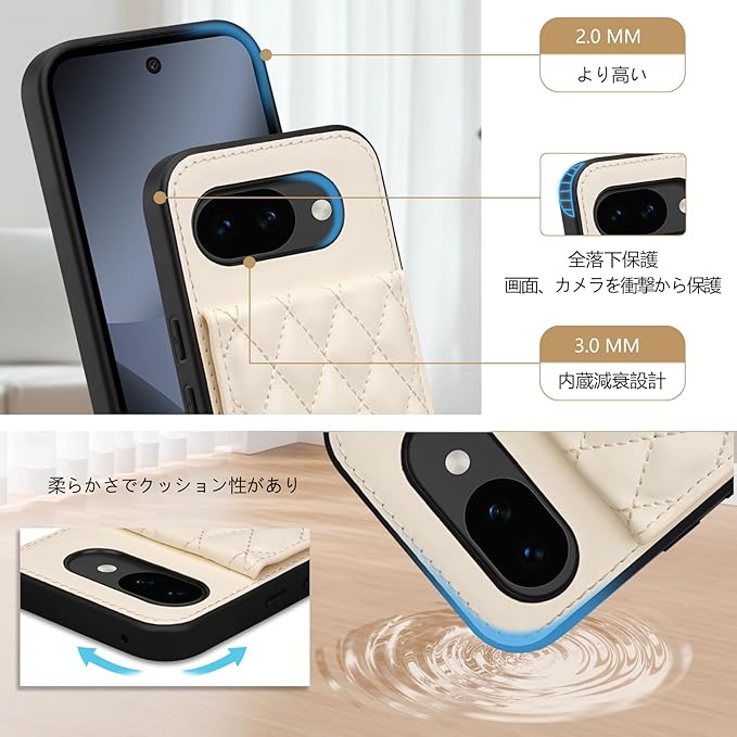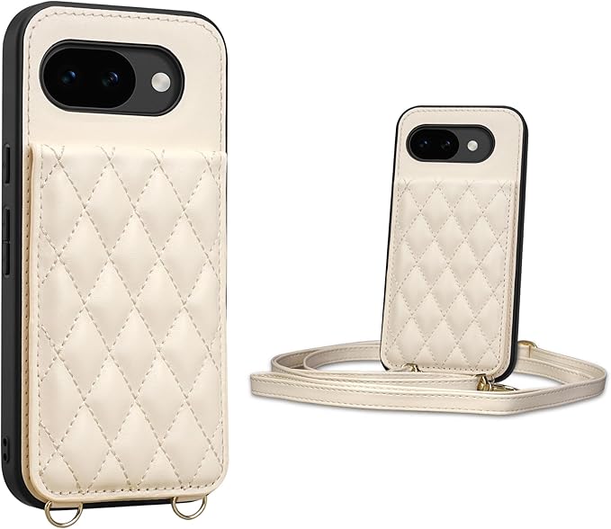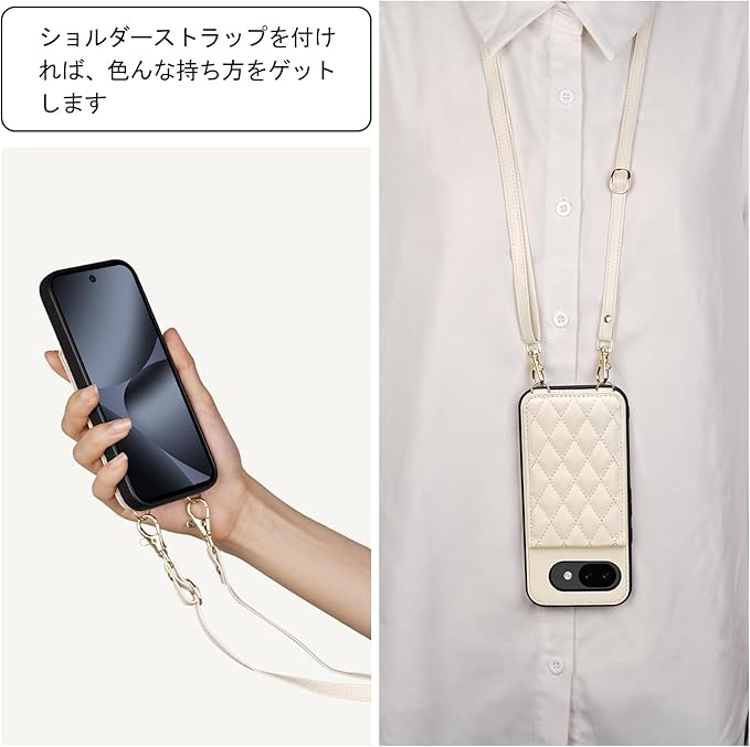 Pixel 10a 用 ケース 手帳型 背面 カードケース ショルダー ストラップ カード収納 Google グーグル ピクセル 10a カバー スタンド機能 肩掛け キルティング 首掛け PUレザー Y5B ホワイト