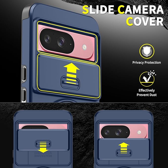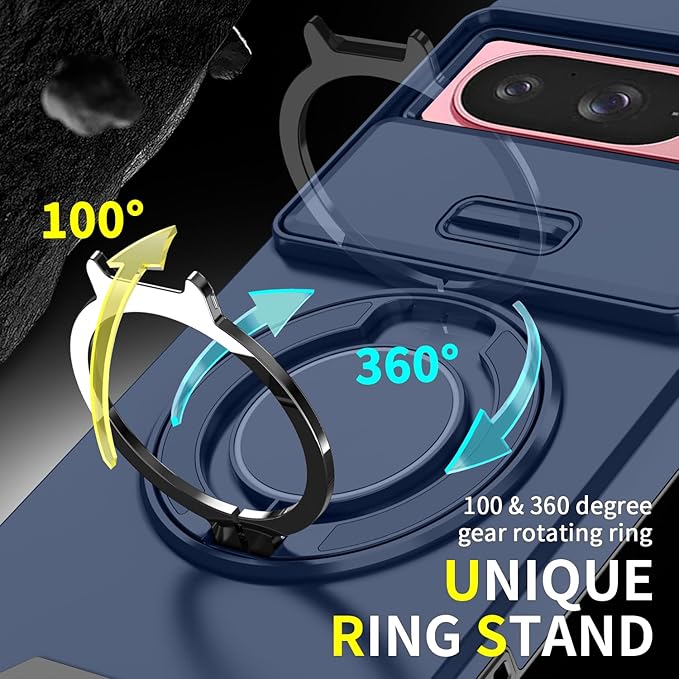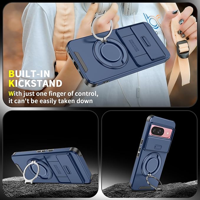 Anlalish携帯ケース 適用する Google Pixel 10 ケース 持っているカメラ保護 耐衝撃 Google Pixel 10 スマホカバー リング人 気 オシャレ車載ホルダー 対応 スライド 保護 カード (青)