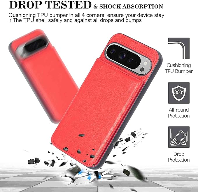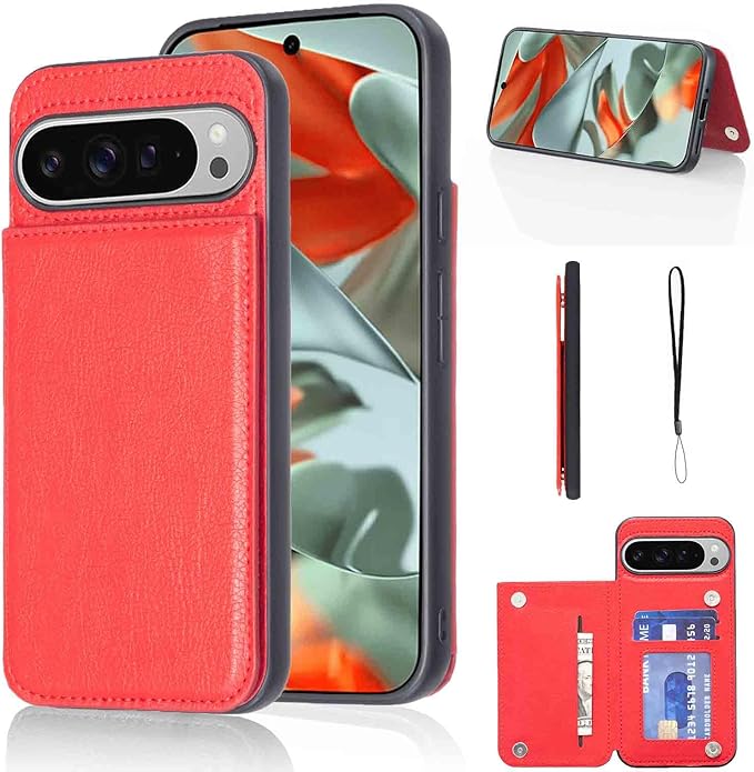 【Geshh】Pixel 10/10 Pro 対応 財布型ケース カード収納 左右開 薄型軽量 耐久性 カバー(レッド)背面ケース スタンド機能 手触りが良い 上質 スキミング防止 手帳型ケース 適用 グーグル ピクセル10 pixel 10/10 pro 赤色