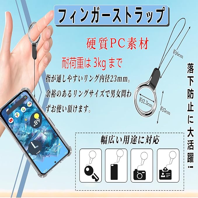 【ストラップ2枚付き & 長さ調整可能 & 両手を解き放つ】本Google Pixel 8Aケースにはフィンガーストラップとネックストラップが付属します(フィンガーストラップ長さ:10cm、ネックストラップ装着時の最大調整長:86cm。)ストラップはいつでも調整および取り外しできます、このアクセサリーはファッションだけでなく、通常のストラップよりも快適で実用的です。 作業、旅行、出張、ショピング、散歩、コンサート、パーティーに最適です。(あなたは受け取るでしょう:1x Google Pixel 8Aケース + 1x フィンガーストラップ+ 1x ネックストラップ)