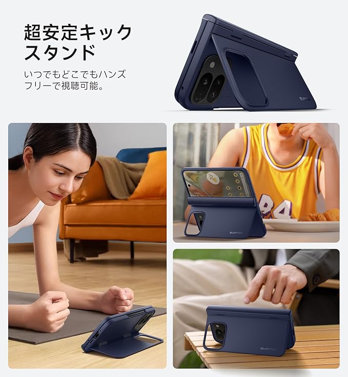 抜群の安定性を誇るキックスタンド:折りたたみ式キックスタンドを使えば、Pixel 9 Pro Fold をハンズフリーのエンターテイメントハブに変身させることができます。ビンジウォッチング、マルチタスク、ゲームなど、あらゆるシーンに最適なキックスタンドは、理想的な視野角と抜群の安定性を提供します。
