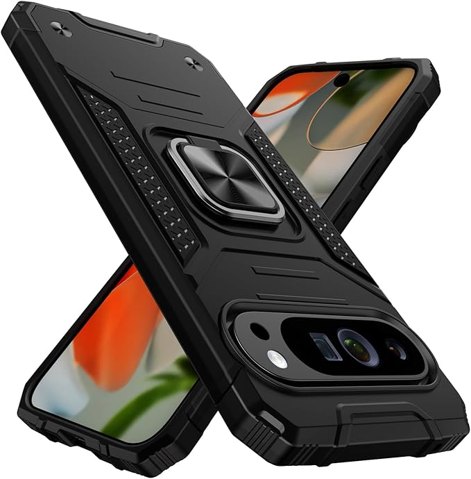 対応 Google Pixel 10 Pro XL 用ケース リング 耐衝撃 落下防止 スタンド機能 PC+TPU二重構造 防塵 薄型 軽量 一体型 360度回転 変形防止 ピクセル 10 プロ XL カバー 黒 MJJ-1051-77-01