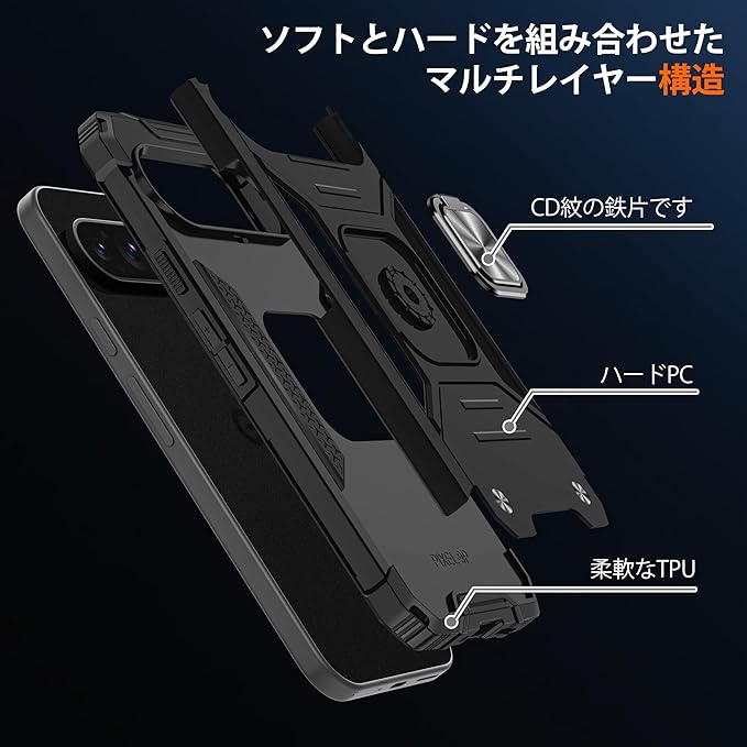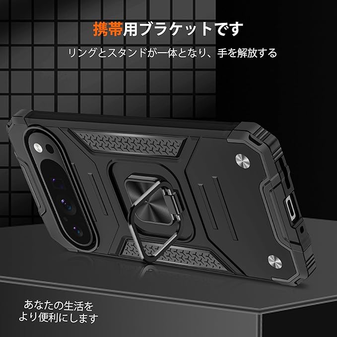 【対応機種】Mnunjiajia 対応 Google Pixel 10 Pro XL 専用 【機能性】後ろに付いているフィンガーリングはスタンド機能はもちろん、滑りにくくて持ちやすい、安定的なグリップが特徴です。リングはケースにしっかり固定されていて、縦置き、横置きどんな角度でも固定できます、360度回転可能、180角度調節可能