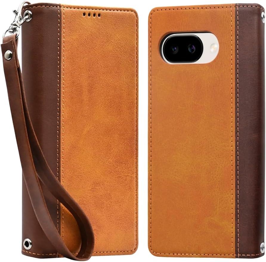 シズカウィル Google Pixel 9a ケース カバー 手帳型 本革調 レザーケース 1個入り イエローブラウン ブラウン