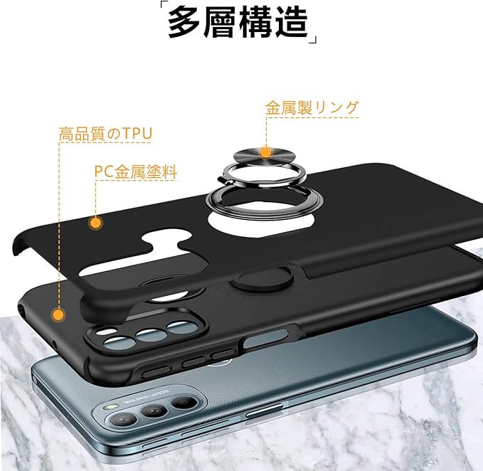 Google Pixel 6A ケース リング付き 耐衝撃 tpu フルプロテクトデザイン スマホケース 軽量 薄型 スタンド機能 全面保護 擦り傷防止 落下防止 米軍MIL規格 車載ホルダー対応 取り出し易い グーグル ピクセル 6a ケース オシャレ 人気 携帯カバー 黒 DA08-10