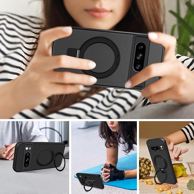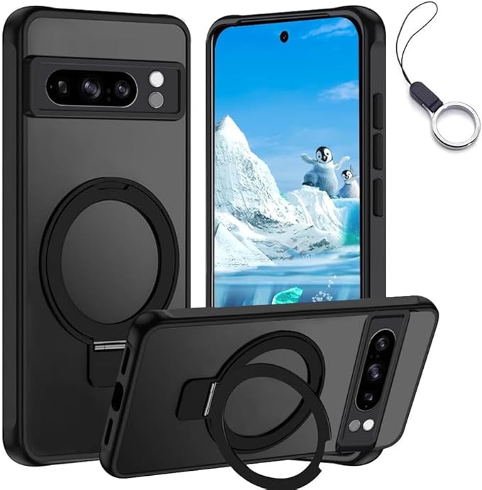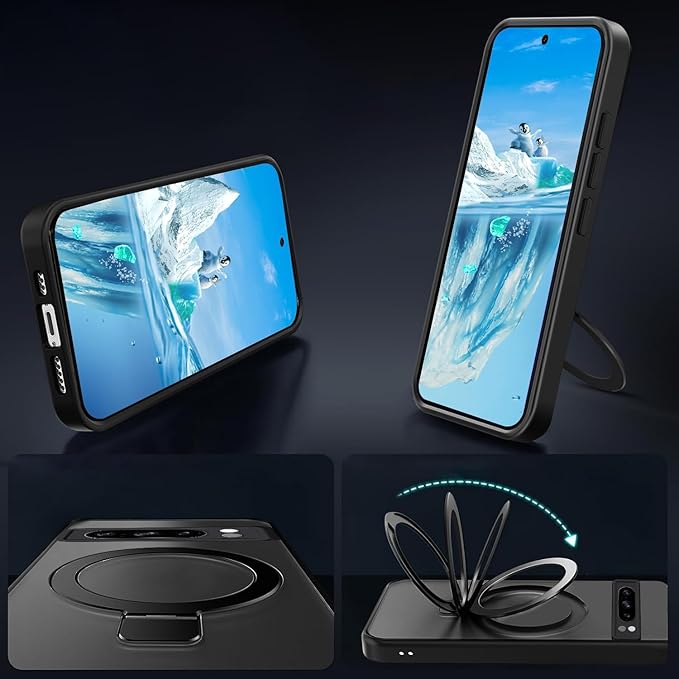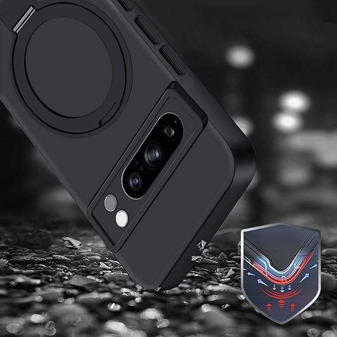 Google Pixel 7 pro ケース MagSafe対応 グーグルピクセル7プロ ケース マグネット搭載 スタンド機能【横縦両立/角度自由調整】 カバー 純正 薄型 マット感 指紋防止 耐衝撃 落下防止 車載ホルダー対応 (ブラック)