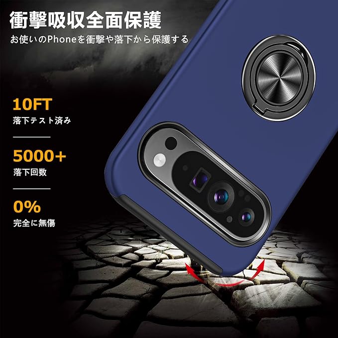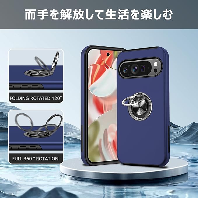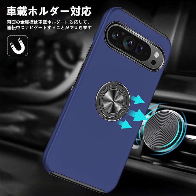 Google Pixel 9 Pro 用ケース/Google Pixel 9 用ケース リング付き 耐衝撃 tpu フルプロテクトデザイン スマホケース 軽量 薄型 スタンド機能 全面保護 擦り傷防止 落下防止 米軍MIL規格 車載ホルダー対応 取り出し易い グーグル ピクセル 9pro/9 用ケース オシャレ 人気 携帯カバー 青 DA08-50