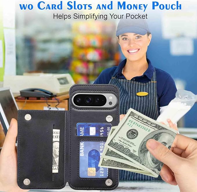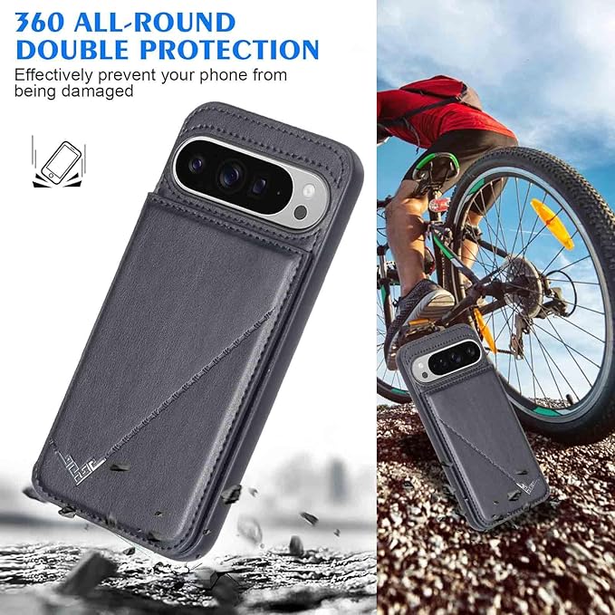 【Geshh】Pixel 10/10 Pro レザーケース(ブラック)耐衝撃 財布型カバー カード収納 横置きスタンド機能 開閉式 ストラップ付き 薄型レザーケース 対応 グーグル ピクセル10 pixel 10/10 pro BLACK