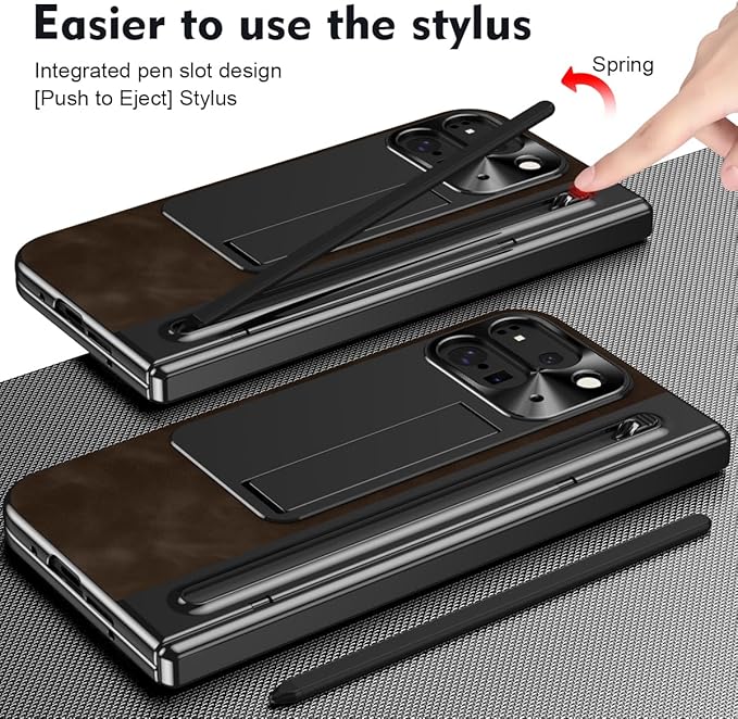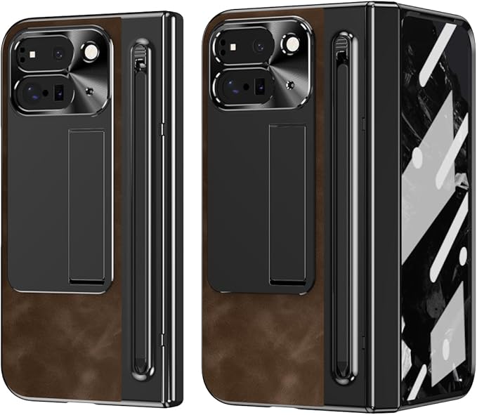 GG Pxl 10 Pro Fold / 9 Pro Fold専用 レザー折り畳みケース ジャズレトロ ナパ 強化ガラス製外画面保護フィルム スタイラスペン収納 金属カメラガード ワイヤレス充電対応 隠蔽式マルチスタンド機能 ヒンジ保護 人気 衝撃吸収 多層構造 全方位保護 軽量 携帯 手帳型 おしゃれ Beautycatchear - 黒