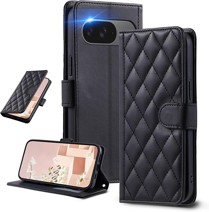 UnivoColors For 手帳型 グーグル ピクセル 10/手帳型 グーグル ピクセル 10 Pro兼用キルティグレザー調 ケース エレガント 高質PU マグネット開閉式 カード収納機能 スタンド機能 液晶全面保護 レンズ保護 ストラップ付属(ブラック)