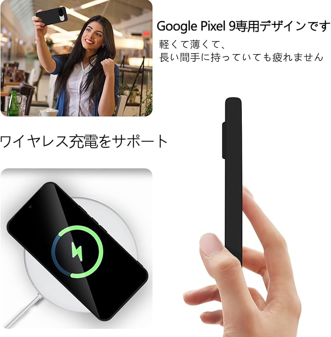 Google pixel 9/9PRO ケース シリコン 滑り止め スマホケース 耐衝撃 米軍MIL規格 SGS認証 指紋防止 カバー グーグル ピクセル 9/9プロ ケース 衝撃吸収 カメラ保護 携帯ケース ソフト 薄型 ワイヤレス充電対応(ブラック)