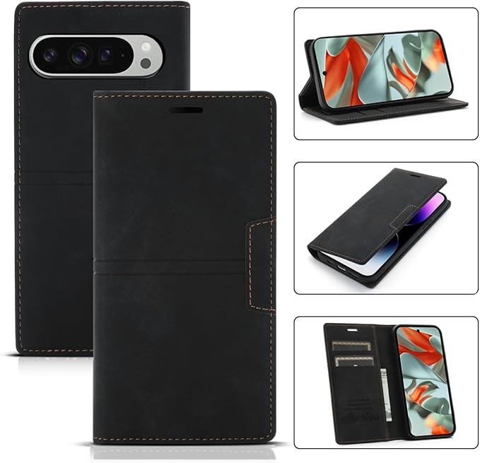 Pepmune Google Pixel 9/Pixel 9 Pro/Pixel 10/Pixel 10 Pro 用 ケース 手帳型 PUレザー カード収納 財布型 マグネット式 スタンド機能付き 耐衝撃 全面保護 スマホケース 衝撃吸収 薄型 軽量 カバー(ブラック)