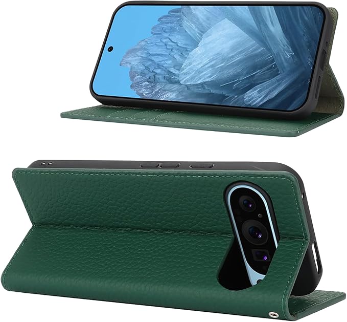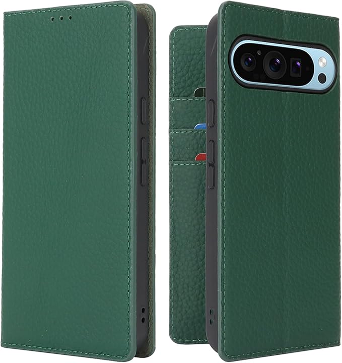 Pelanty for Google Pixel 9 Pro XL ケース手帳型 スマホケース 牛革製品 本革レザー 財布型カバー カード収納 スタンド機能 内蔵マグネット 手作り柔らかい グーグル ピクセル9pro XL 携帯カバー ストラップ付 ヘッドフォンケーブル 耐衝撃 グリーン