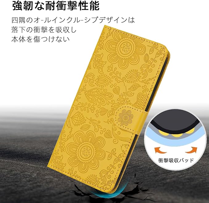 Google Pixel 9 Pro ケース 手帳型 スタンド機能 Pixel9 ケース Pixel9プロ スマホケース 手帳型 グーグルピクセル9ケース 手帳型 ぐーくるぴくせる9 携帯カバー 財布型 携帯ケースgoogleピクセル9 ピクセル9 ケース 手帳型 カード収納 Googleピクセル9 カバー 高级PUレザー ストラップ付 スマホケース 花柄 軽量 薄型 -黄色
