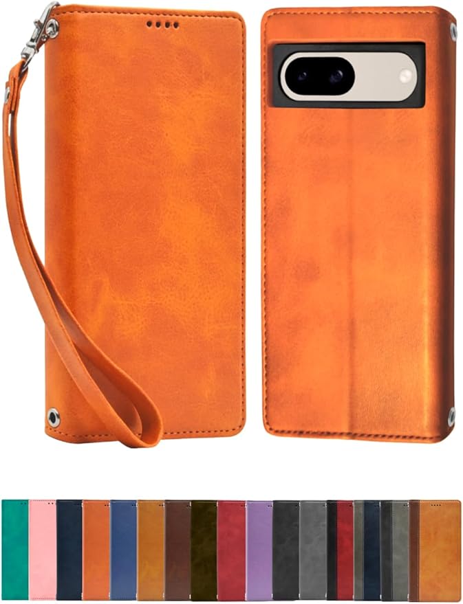 シズカウィル Google Pixel 8a ケース カバー 手帳型 本革調 レザーケース オレンジ 1個入り