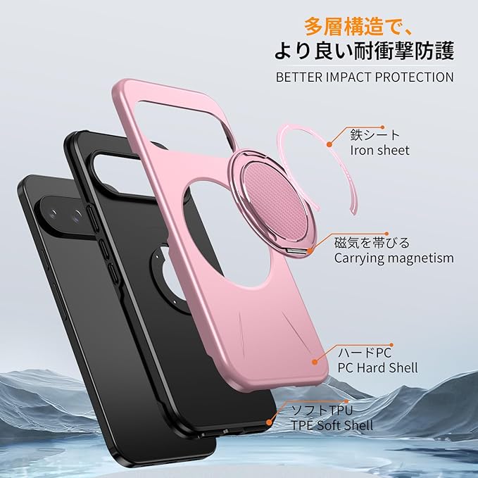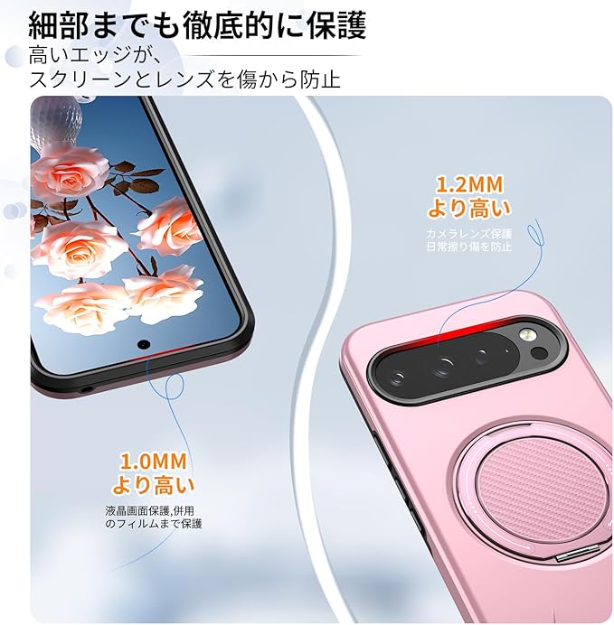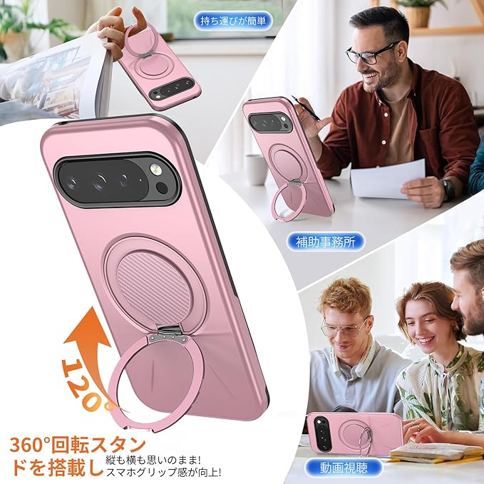 対応 Google Pixel 10/Pixel 10 Pro 用の ケース magsafe対応 360 回転スタンド 耐衝撃 米軍MIL規格 強磁力 リング付き ワイヤレス充電対応 10/10 Pro 用 カバー 指紋防止 レンズ保護 ピンク 525-pix10-06
